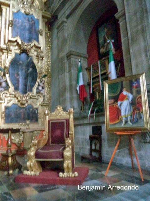 "En la cornisa superior del cuerpo que servía de base a la pirámide, se pusieron los despojos del Sr. Iturbide: el sombrero y manto de la órden de Guadalupe: su propio uniforme de general mexicano, su banda, su bastón, su sombrero y su espada". Fue así como, el 24, 56 y 26 el catafalco se mantuvo en el templo de San Francisco, ese día 26 de octubre, salieron rumbo a la Catedral, dicen que miles de personas llenaban la antigua calle de San Francisco y la de Plateros hasta llegar al Zócalo, que todos vestían luto y que los edificios mostraban gallardetes negros, que la procesión fue la más solemne nunca antes vista, con caballos aderezados todos en negro, que era tal la multitud que, cuando la urna entraba en Catedral, las últimas personas salían de la procesión en el templo de San Francisco, ese día 26 hubo una solemnidad y el 27 de Octubre de 1838 se cantaría en latín una misa solemnísima, las exequias de Agustín de Iturbide. Fue en una de las presidencias de Santa Anna que se decreta la exhumación de los restos, pero es diez años después que se publica la crónica de los ceremoniales.